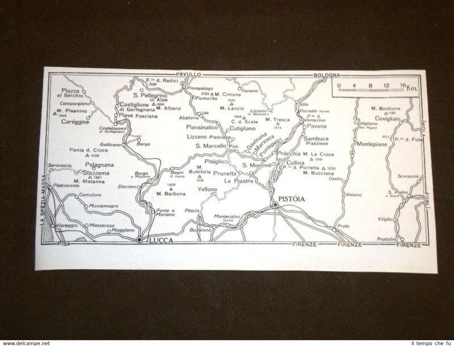 Carta o Cartina di Pistoia, Lucca, Piazza al Serchio, Vellano, Cutigliano, ecc