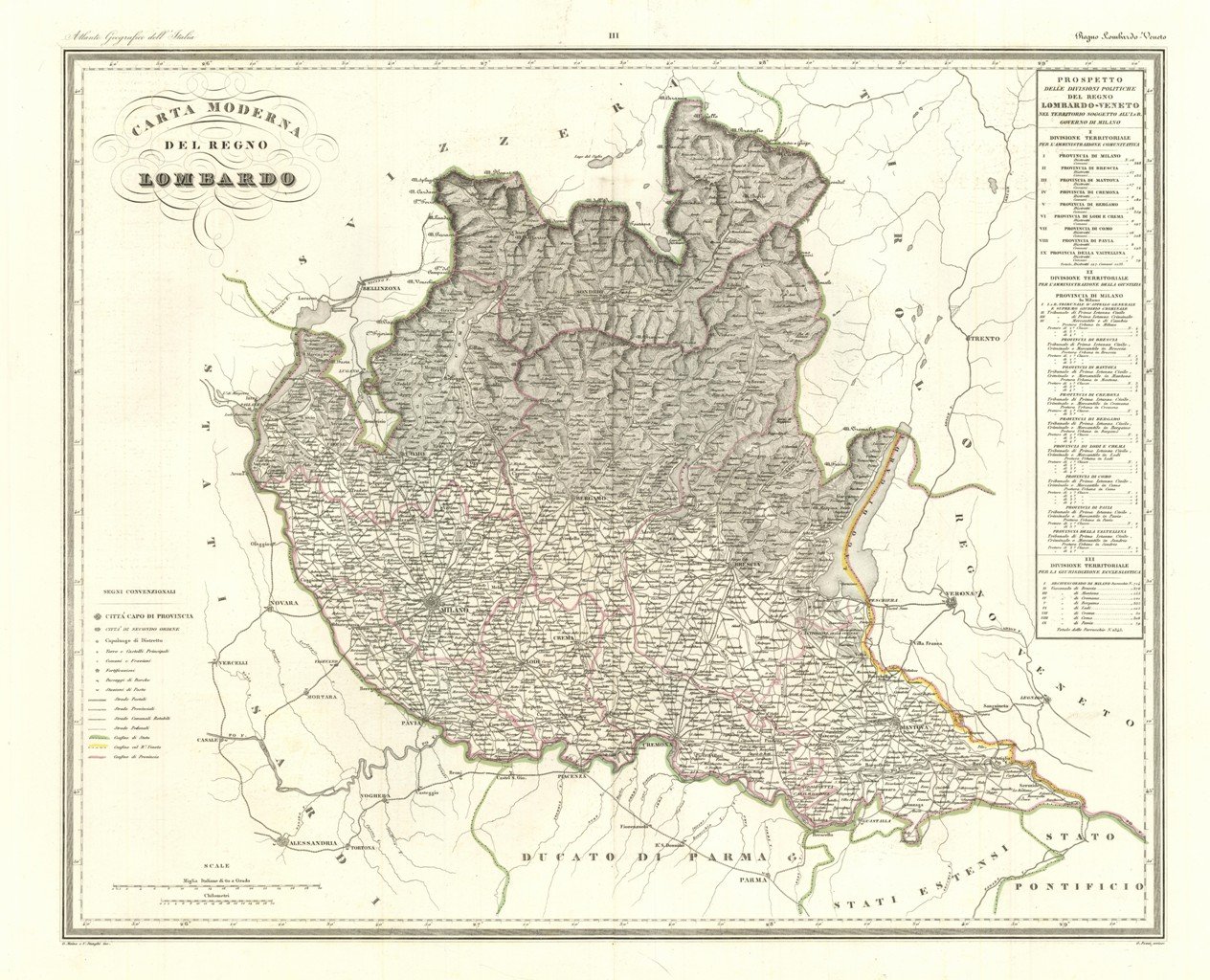 Carta Orografica e Idrografica del Regno Lombardo - Carta del Regno Lombardo avanti il Dominio dei Romani . - Carta Moderna del Regno Lombardo