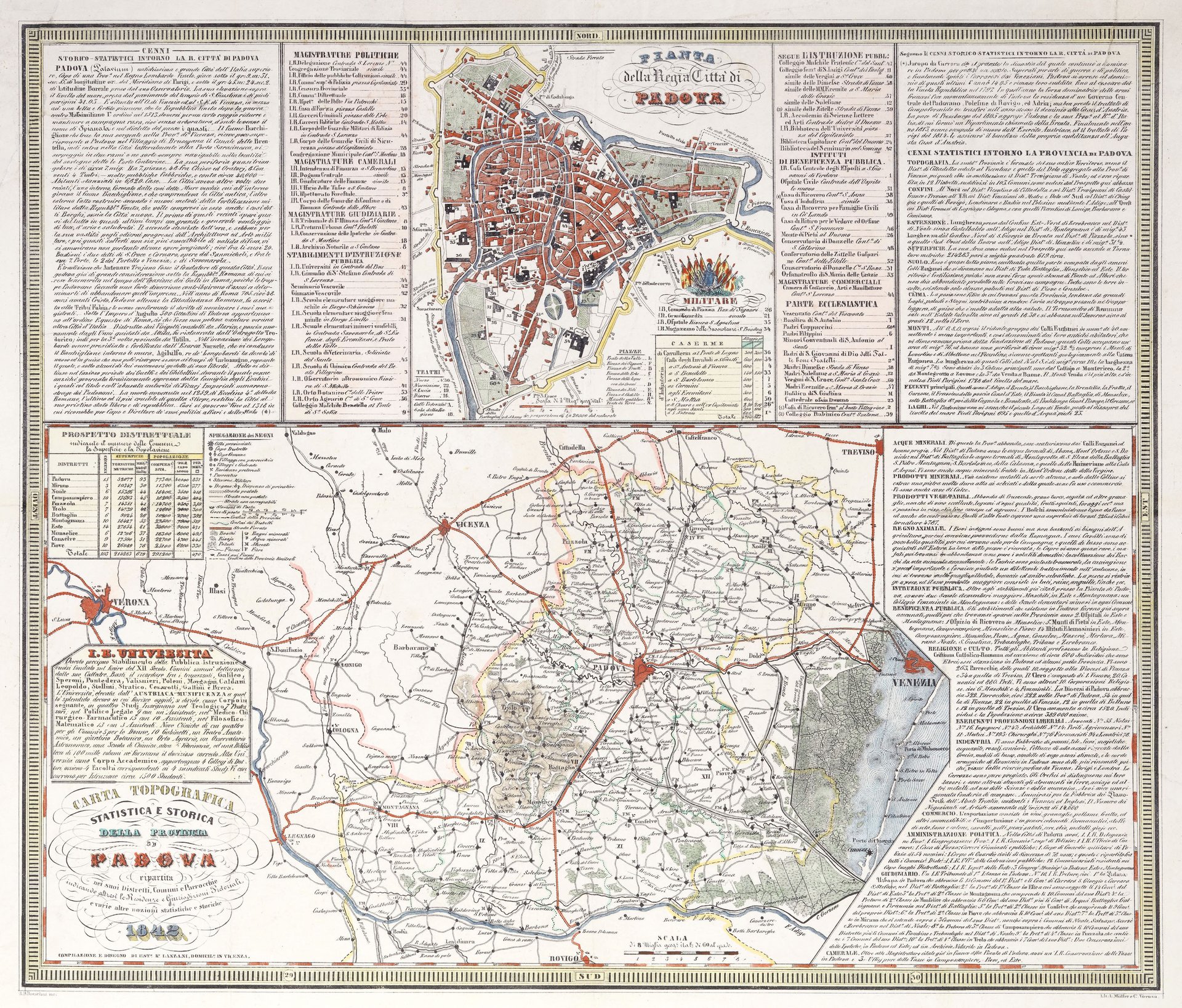 Carta topografica statistica e storica della provincia di Padova ripartita nei suoi distretti, comuni e parrocchie…(con) Pianta della regia città di Padova