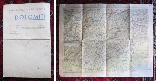 Carta turistica di orientamento della regione delle DOLOMITI. Società Automobilistica Dolomiti - Cortina D.Ampezzo
