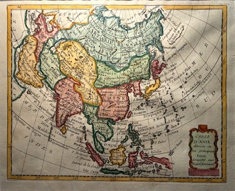 Carta geografica originale (cm. 22,5x18 ca. più ampi margini bianchi) tratta da ‘Atlas moderne portatif’. Bella coloritura all’acquarello. Esemplare in ottimo stato di conservazione. Non comune.
