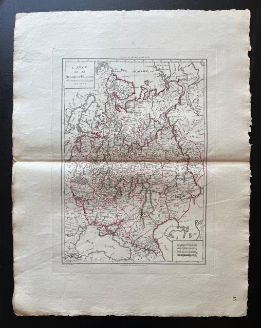 Paris, 1802. Incisione in rame all'acquaforte, confini in colore d'epoca, cm 46 x 60 (al foglio). Incisa dal Tardieu con la cartografia di J. B. Poirson Ingégn.r Gèographe. Piega editoriale al centro, ottimo stato di conservazione.