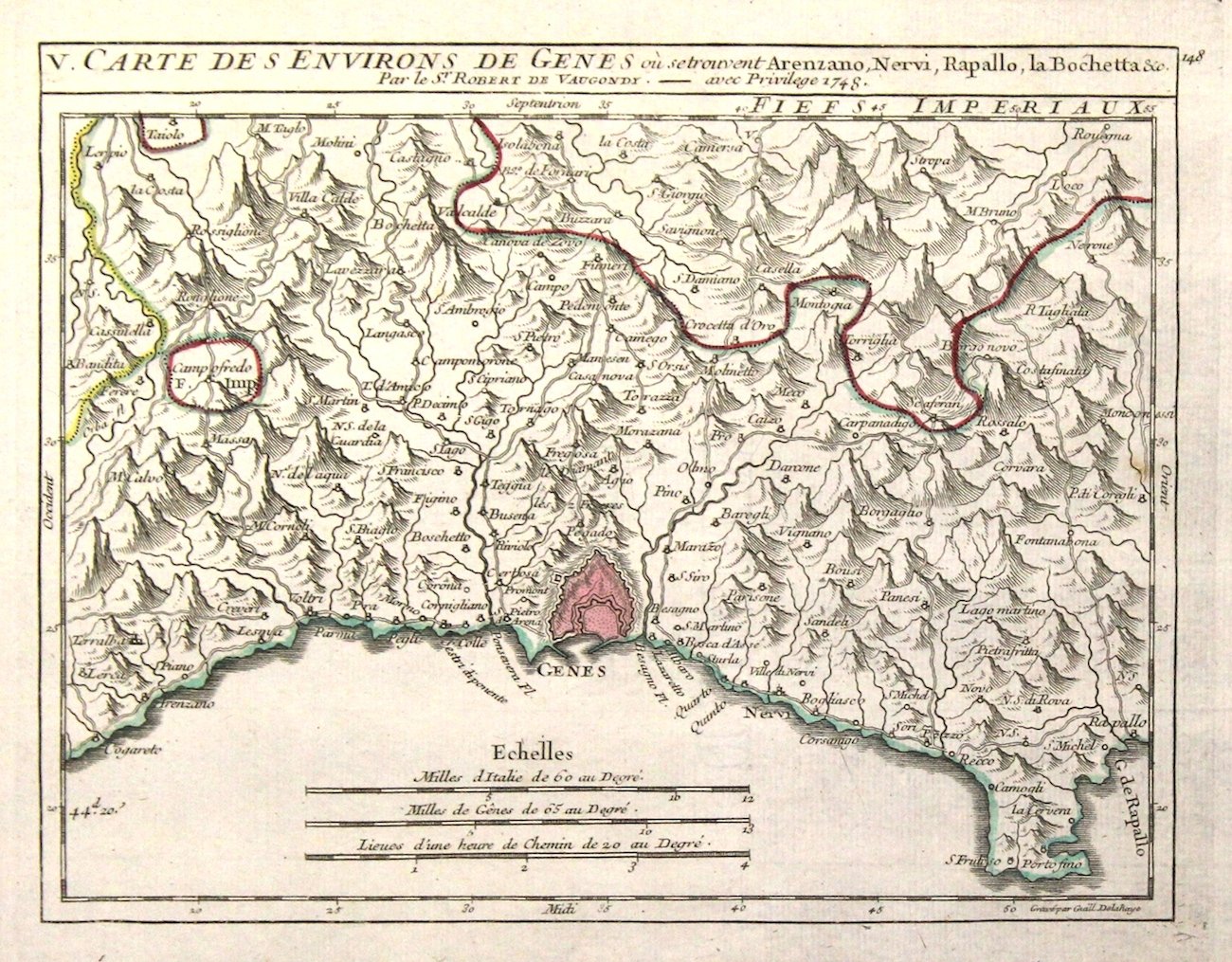 Carte des environs de Genes où se trouvent Arenzano, Nervi, Rapallo, La Bochetta.