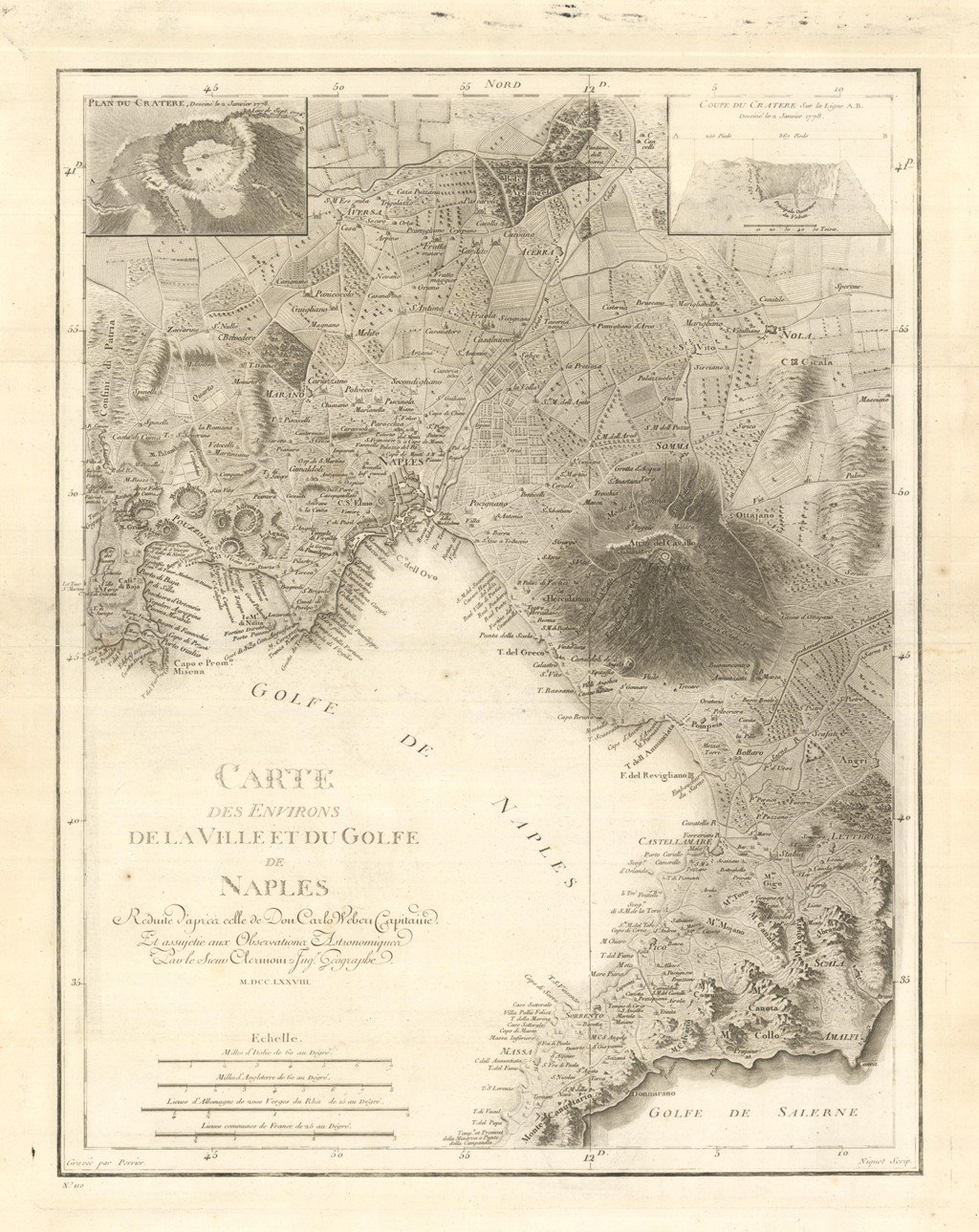Carta geografica dei dintorni di Napoli tratta dalla prima edizione della monumentale opera edita da Jean-Claude Richard de Saint-Non, meglio noto come Abate di Saint-Non " Voyage ou Description des Royaumes de Naples et de Sicilie ". Pubblicata a Parigi dal 1781 al 1786.