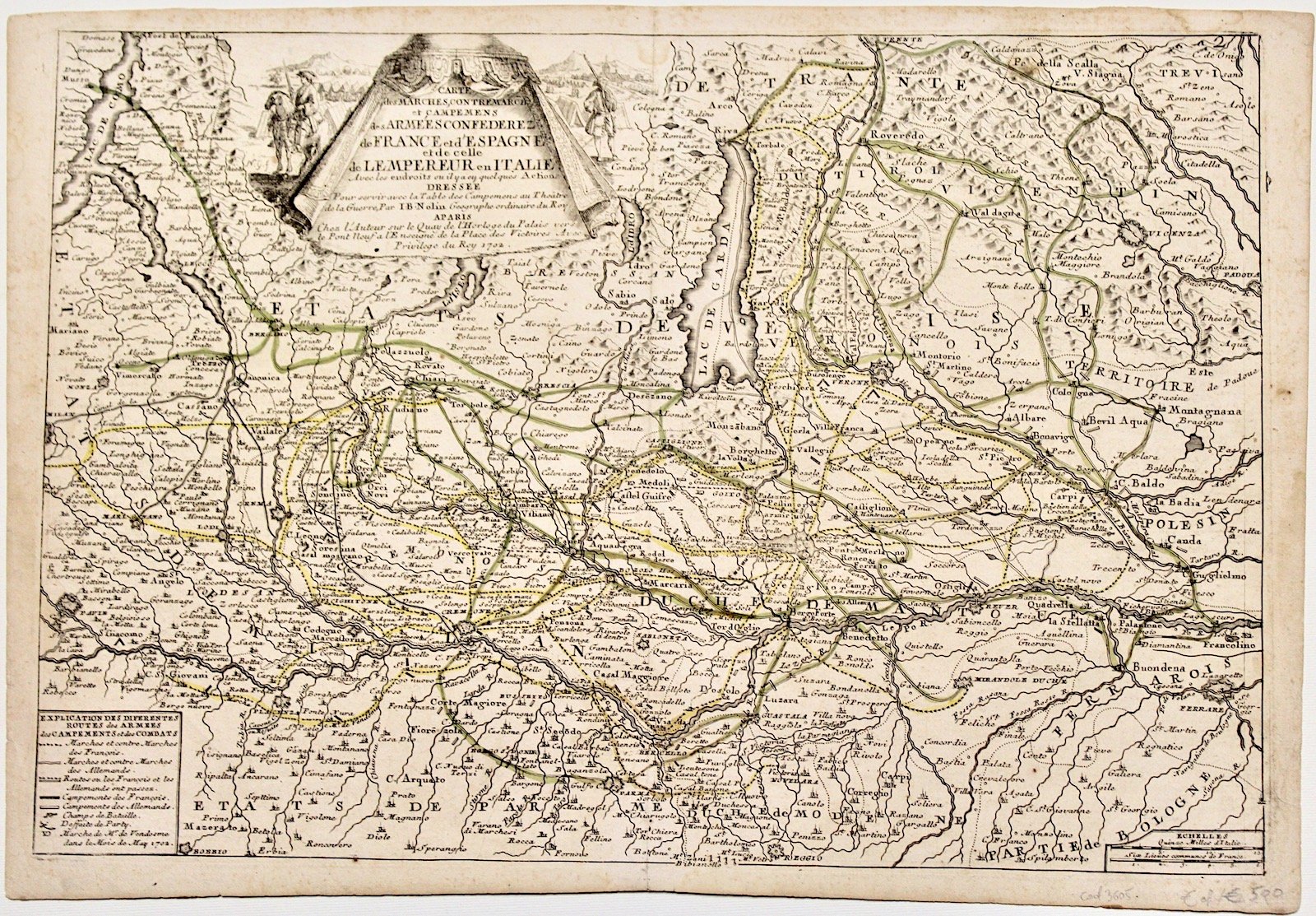 Carte des marches, contremarches et campemens des armées confederz de France et d'Espagne et de celle de l'empereur en Italie