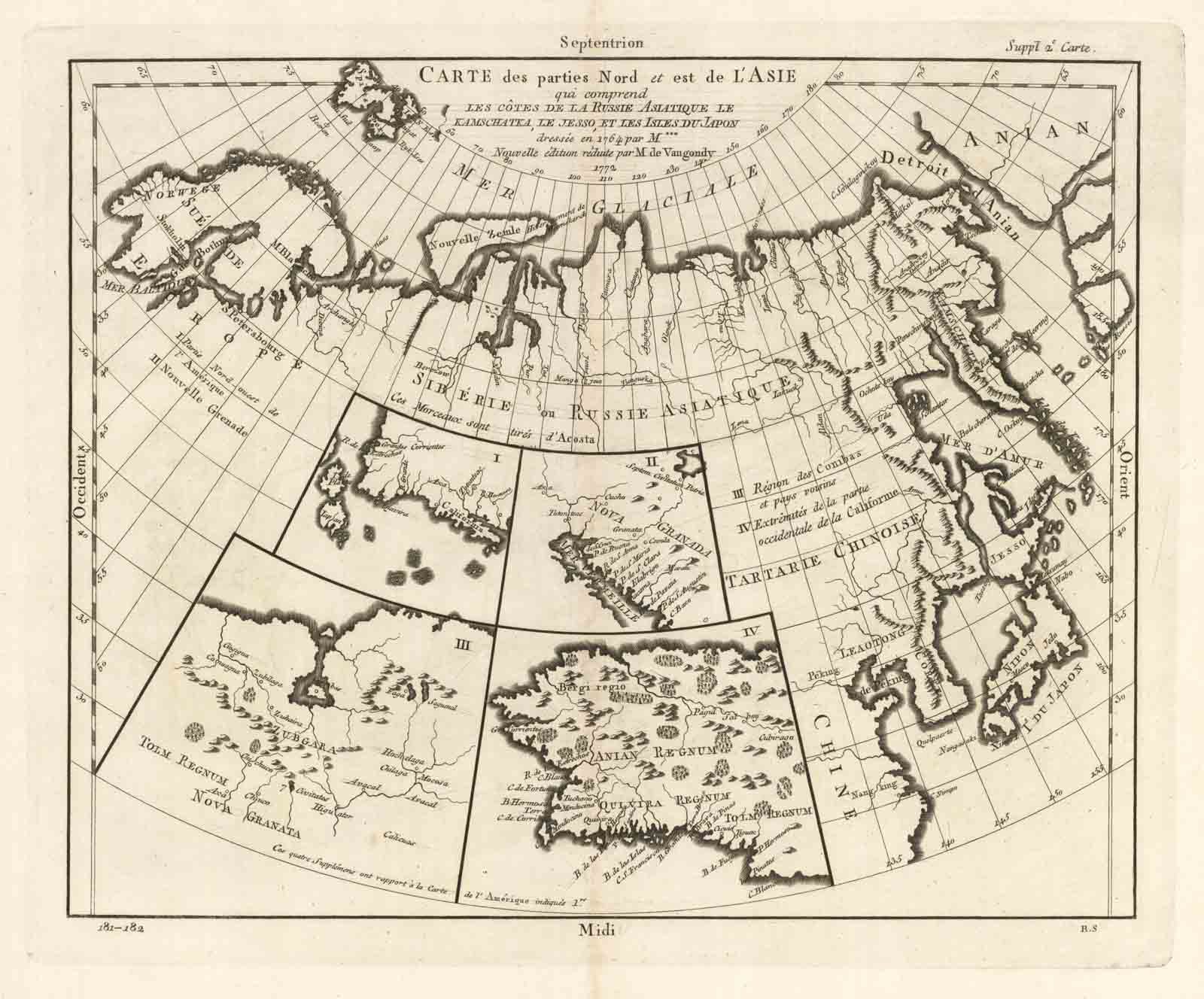 Interessante carta raffigurante le coste della Russia asiatica, della Kamchatka, di Jesso e del Giappone