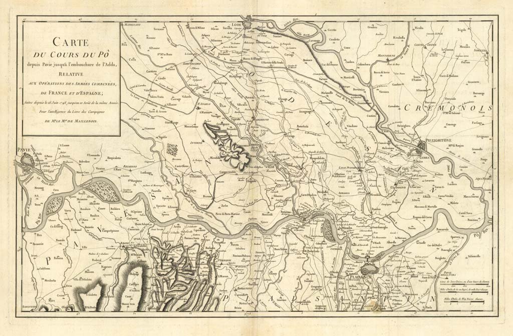 CARTE DU COURS DU PO DEPUIS PAVIE JUSQU’A L’EMBOUCHURE DE L’ADDA RELATIVE AUX OPERATIONS DES ARMEES COMBINEES DE FRANCE ET D’ESPAGNE.