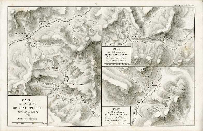 Carte du passage du Mont Splugen Dessinèe et Gravèe Par Ambroise Tardieu; Plan Des Retranchemens sur le Mont Tonale Dessinèe et Gravèe Par Ambroise Tardieu; Plan Des Retranchemens de Pieve di Buono Dessinèe et Gravèe Par Ambroise Tardieu.