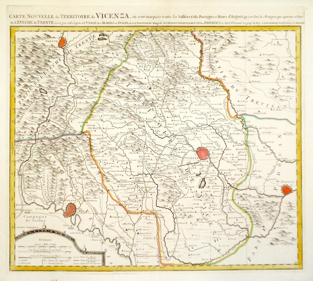 Incisione in rame, coloritura originale d'epoca, mm 475x565. Sanson, geografo del Re Luigi XIII è considerato il fondatore della cartografia francese. Esemplare molto bello. <BR>