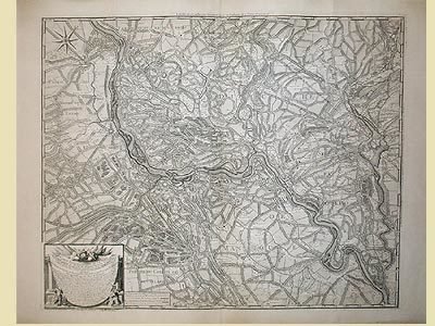 Incisione in rame eseguita da Durand e De Favanne, 575x710. Carta molto particolareggiata che raffigura il territorio vicino al Po dove si svolsero le battaglie per le guerre di Successione, compreso fra Governolo, Castelnuovo, Novellara, Colorno, Bozzolo, Goito, Mantova. De Beaurain, geografo reale fu allievo di Moullard Sanson. Ferrari, Mantova nelle stampe, n. 345.