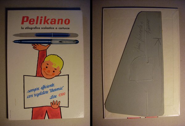 Cartello da banco "PELIKANO la stilografica scolastica a cartucce"