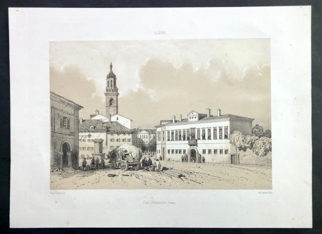 Tonolitografia delineata dal Grandsire (in basso a sinistra) e impressa da Lemercier (in basso a destra), cm 24,5 x 33 (il foglio). Fa parte di un album di vedute venete (di cui molte dedicate a Venezia) ma dove c'è anche una parte dedicata all'Illyrie, come reca qui il titolo al margine bianco superiore. Buono stato.