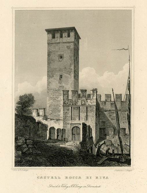 Incisione su acciaio di dimensioni 140x105 mm. Condizioni : USATO - Stato : Buono, ordinari segni d'uso e del tempo. Lievissimi segni di foxing. Altre note : Bella veduta di impostazione verticale, raffigurante Riva del Garda e in particolare la rocca con il suo mastio. L'edificio fortificato sorge in riva al lago, che è appena accennato nel primo piano, e fu concesso nel 1124 dal vescovo Altemanno. Subì nel tempo numerose mutazioni d'uso ed è oggi uno dei più importanti monumenti rivani. Scheda bibliografica tratta da "Il Garda nelle stampe" a cura di Ugo Spini, scheda . 268 p. 132.