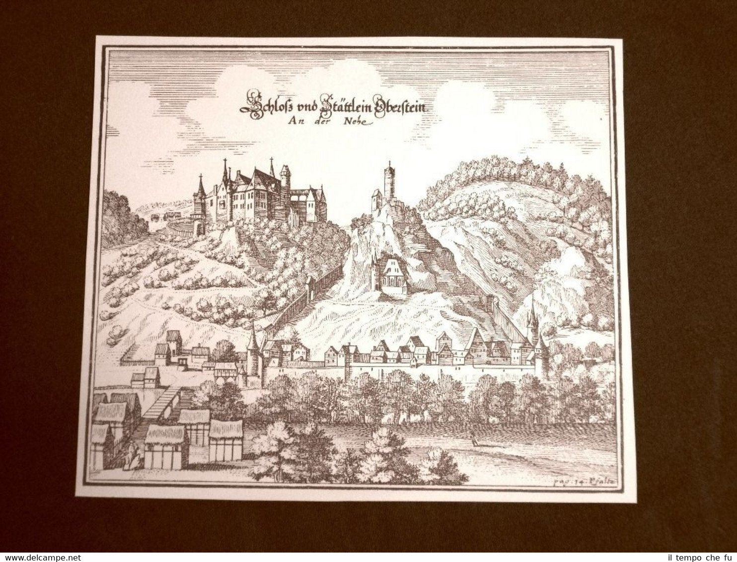 Castello di Idar-Oberstein Germania Incisione Merian Matthäus del 1640 Ristampa