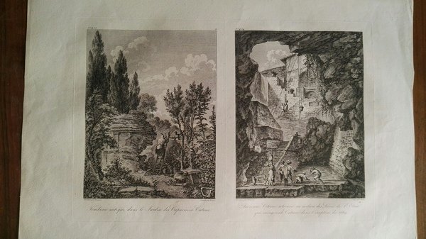 Veduta pubblicata nel “Voyage Pittoresque a Naples et en Sicile". Incisione in rame, ottimo stato di conservazione. Sicile. Dimensioni: 50 cm (lunghezza) x 33,5 (larghezza). Dessinée par Chatelet.