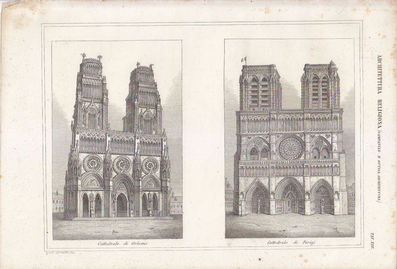 CATTEDRALE DI ORLEANS E DI PARIGI Incisione Stampa 1866 Originale Antica