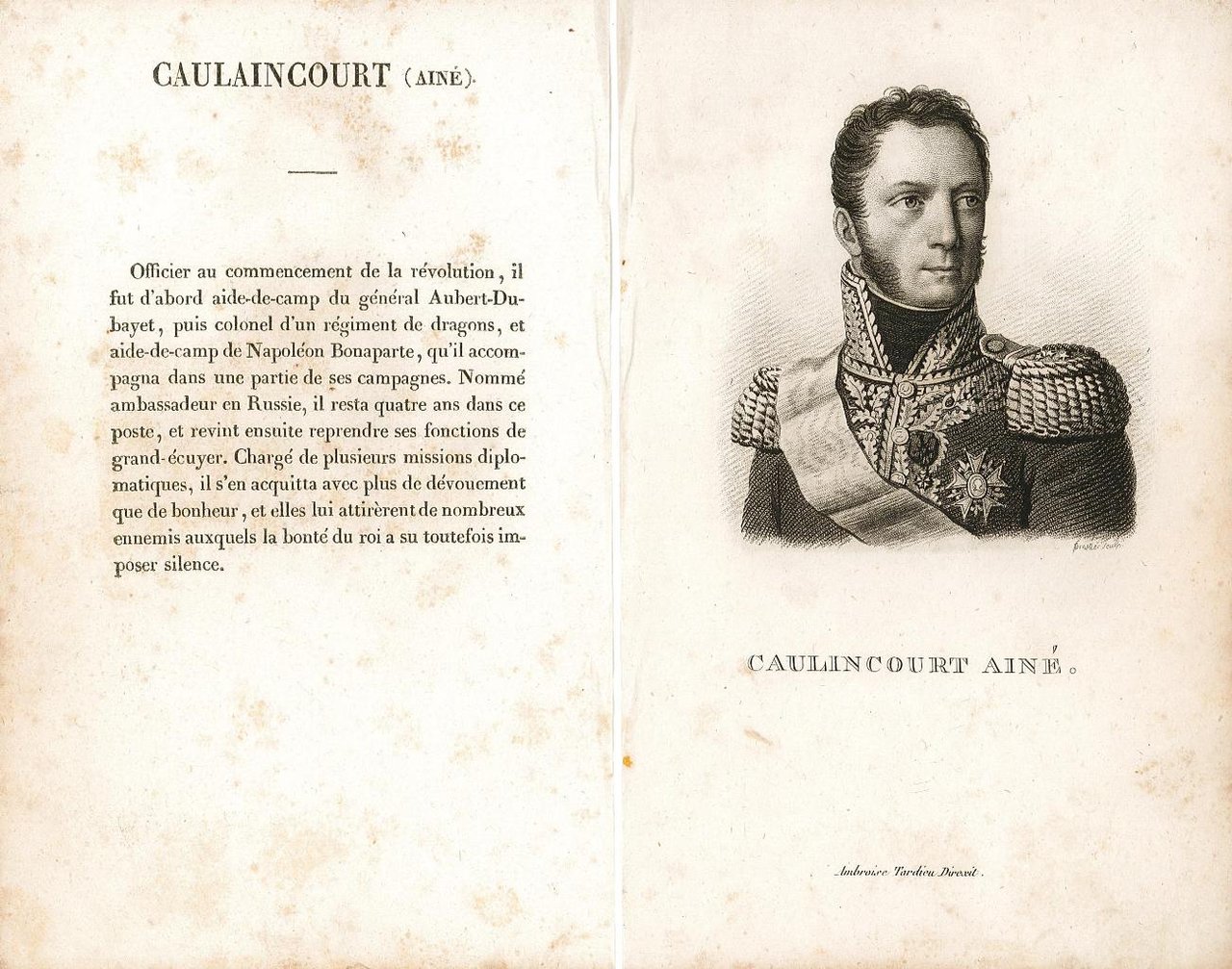 Ritratto del personaggio distintosi nelle vittorie e conquiste militari francesi tra il 1792 e 1815. L'incisione, antica ed originale, è accompagnata da pagina con testo descrittivo del personaggio. Foxing