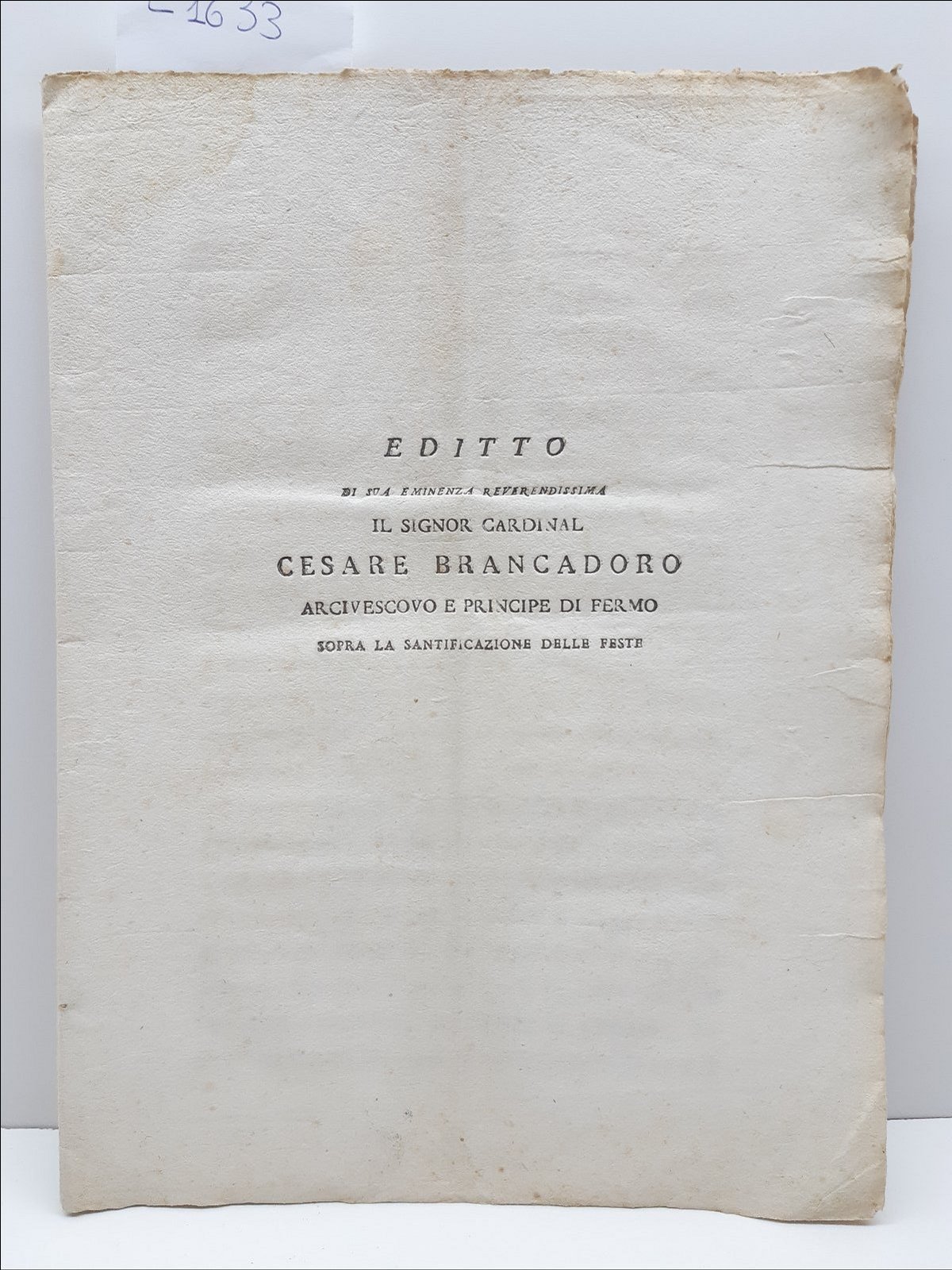Editto Cardinal Cesare Brancadoro Sopra La Santificazione Delle Feste 1803