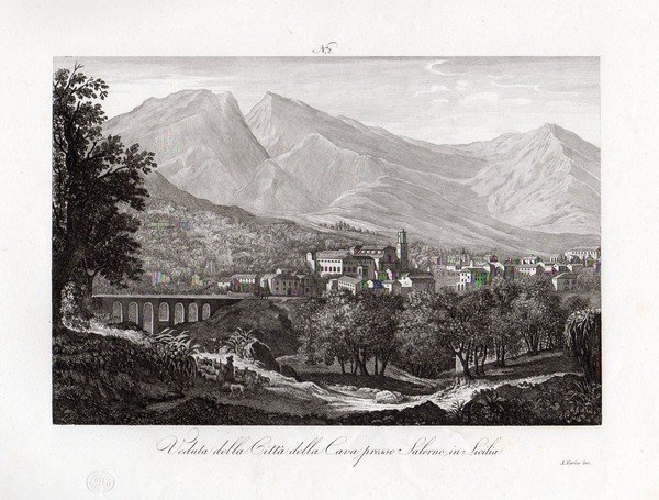 CAVA dei TIRRENI – “Veduta della Città della Cava presso Salerno in Sicilia�