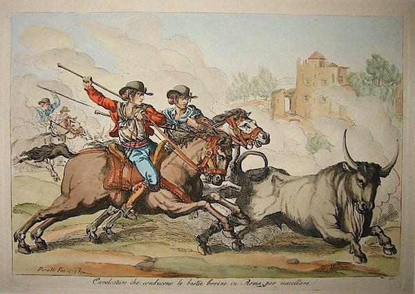 Cavalcature che conducono le bestie bovine in Roma, per macellare