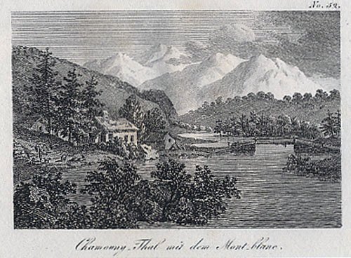 Stampa antica ed originale con veduta della valle di Chamonuix. Rifer. cat. Trippini 5/96 n°126