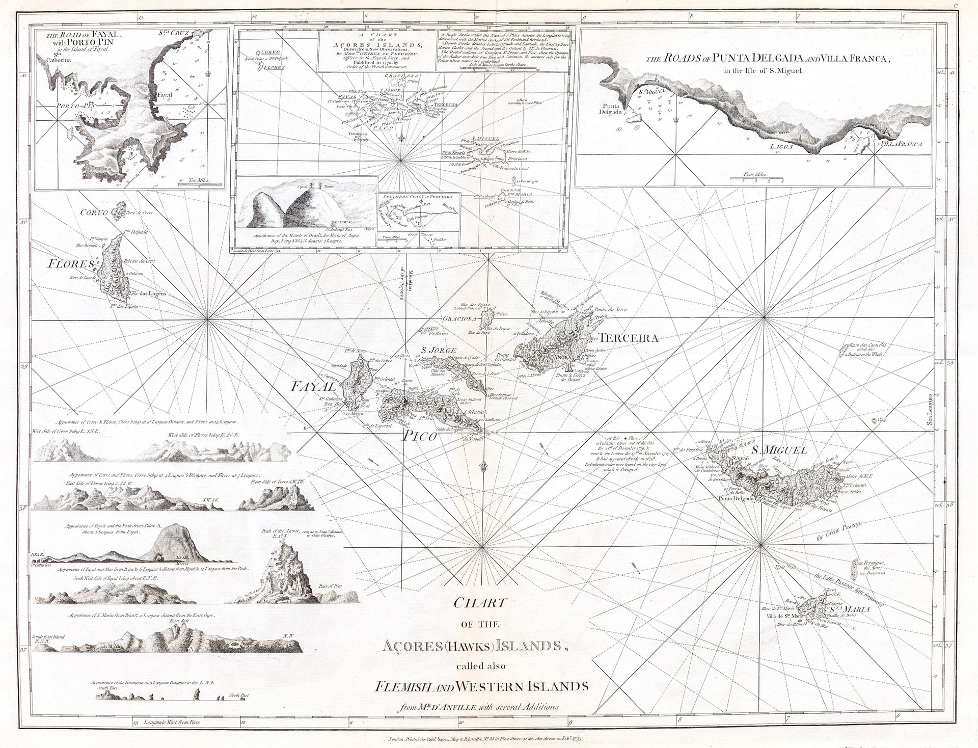 Chart of the Açores (Hawks) islands called also Flemish and western islands from Mr D'Anville with several additions