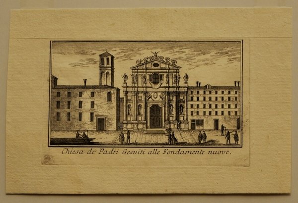 Acquaforte di mm 130 x 75 (alla battuta). Carta vergata forte. Foglio senza difetti e a pieni margini. Proveniente dalle "Teatro delle fabbriche piu cospicue in prospettiva, della citta di Venezia. Tomo primo (-secondo)". (Venezia): nella stamperia di Giambatista Albrizzi q. Gir., (1740). Francesco Zucchi (1692-1764): il più dotato incisore della famiglia, divenne molto celebre per la illustrazione della guida più celebre del '700 veneziano.