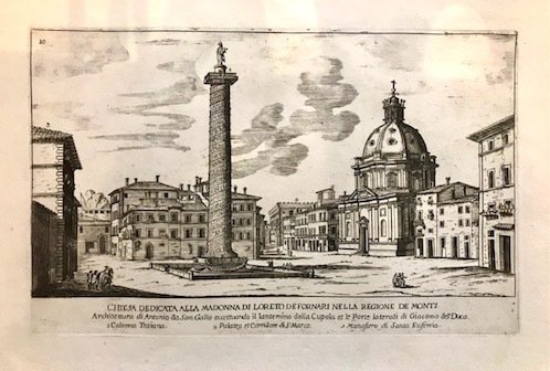 Incisione originale su rame (cm. 29x18,3 più ampi margini bianchi) tratta da ‘Il nuovo splendore delle fabriche in prospettiva di Roma moderna’ edito da Carlo Losi. Ottimo stato di conservazione.