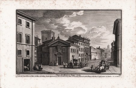 Veduta tratta dalla monumentale opera ' Delle magnificenze di Roma antica e moderna. Pubblicata in 10 volumi dal 1747 al 1761, l’opera presenta 238 incisioni in rame, ciascuna incisione con testo narrativo che fornisce informazioni storiche e documentarie. ' Conosciuto dai più semplicemente come il "maestro" di Giovanni Battista Piranesi, Giuseppe Vasi rivela in quest'opera monumentale la pienezza della sua creatività grafica. I 10 libri che la compongono hanno ognuno un frontespizio con titolo e data diversi: ' Libro primo che contiene le porte e mura; Libro secondo, che contiene le piazze principali di Roma con obelischi, colonne, ed altri ornamenti; Libro terzo, che contiene le basiliche e chiese antiche di Roma; Libro quarto che contiene i palazzi e le vie più celebri; Libro quinto che contiene i ponti e gli edifizj sul Libro sesto che contiene la chiese parrocchiali; Libro settimo che contiene i conventi e case dei chierici regolari; Libro ottavo che contiene i monasteri e conservatorj di donne; Libro nono che contiene i collegj, spedali, e luoghi pii; decimo che contiene le ville e giardini più rimarchevoli. Le ' Magnificenze ' forniscono un panorama completo e al tempo stesso anticonvenzionale dell'Urbe: così, insieme alle consuete, celeberrime inquadrature desunte dalla migliore tradizione vedutistica, si trova anche una Roma insolita, quella che, talvolta, non esiste più. A quest'opera, di centrale importanza nell'editoria romana di metà Settecento, l'Autore aveva lavorato per quasi un ventennio realizzando una monumentale guida dell'Urbe dove accanto alle consuete e celeberrime inquadrature tratte dalla migliore tradizione vedutistica, immortala anche scorci insoliti che sono poi scomparsi con il cambiare della città. Il testo che accompagna le vedute nel primo volume è opera di Giuseppe Bianchini, nel secondo di Orazio Orlandi e nei restanti del Vasi stesso. ' ' A partire dall'edizione del 1786, l'opera del Vasi, fu aggiornata dal figlio Mariano, che la pubblicò col titolo ' Raccolta delle più belle vedute antiche, e moderne di Roma, mostrando solo il nome del padre come autore. Questa nuova edizione presentava molte tavole della prima edizione, ed alcune nuove. Anche la pubblicazione di Mariano Vasi fu stampata più volte, sempre con l’aggiunta di nuove tavole. Esemplare tratto dalla seconda edizione del 1772. Acquaforte, stampata su carta vergata coeva, completa dei margini, in ottimo stato di conservazione. ' View taken from the monumental work ' Delle magnificenze di Roma antica e moderna. ' Published in 10 volumes from 1747 to 1761, the work features 238 copper engravings, each engraving with a narrative text that provides historical and documentary information. ' Known by most simply as the "master" of Giovanni Battista Piranesi, Giuseppe Vasi reveals in this monumental work the fullness of his graphic creativity. ' The 10 books that compose it each have a title page with a different title and date: ' Libro primo che contiene le porte e mura; Libro secondo, che contiene le piazze principali di Roma con obelischi, colonne, ed altri ornamenti; Libro terzo, che contiene le basiliche e chiese antiche di Roma; Libro quarto che contiene i palazzi e le vie più celebri; Libro quinto che contiene i ponti e gli edifizj sul Libro sesto che contiene la chiese parrocchiali; Libro settimo che contiene i conventi e case dei chierici regolari; Libro ottavo che contiene i monasteri e conservatorj di donne; Libro nono che contiene i collegj, spedali, e luoghi pii; decimo che contiene le ville e giardini più rimarchevoli. ' The ' Magnificences ' provide a complete and at the same time unconventional panorama of the City: thus, together with the usual, celebrated shots taken from the best tradition of ' vedutistica, one also finds an unusual Rome, one that, at times, no longer exists. The author had worked on this work, of central importance in Roman publishing in the middle of the eighteenth century, for almost twenty years, producing a monumental guide to the “Urbe” where, alongside the usual and famous shots taken from the best tradition of ' vedutistica, he also immortalized unusual views that have since disappeared with the change of the city. The text that accompanies the views in the first volume is by Giuseppe Bianchini, in the second by Orazio Orlandi and in the remaining ones by Vasi himself. ' ' Starting from the edition of 1786, the work of Vasi, was updated by his son Mariano, who published it under the title ' Raccolta delle più belle vedute antiche, e moderne di Roma, showing only the name of his father as author. This new edition presented many plates of the first edition, and some new ones. The publication of Mariano Vasi was also printed several times, always with the addition of new plates. ' ' View taken from the second edition of the Vasi’s ' Delle Magnificenze di Roma Antica e Moderna, edited in 1772. Etching, printed on contemporary laid paper, in very good condition. Cfr. Scalabroni, 190