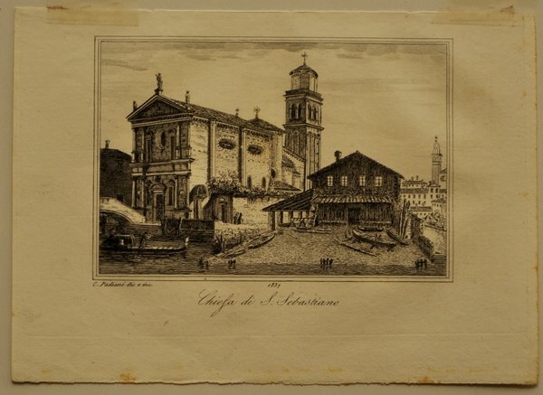 Acquaforte su rame di mm 190 x 130.Una delle due stampe di maggior qualità di tutta la serie. L'incisione è tratta dalla famosa guida ottocentesca elogiata dal Cicogna per l'accuratezza descrittiva:" Il Fiore di Venezia ossia i quadri, i monumenti, le vedute ed i costumi veneziani rappresentati in incisioni eseguite da abili artisti ed illustrati da Ermolao Paoletti." Cicogna n. 4503