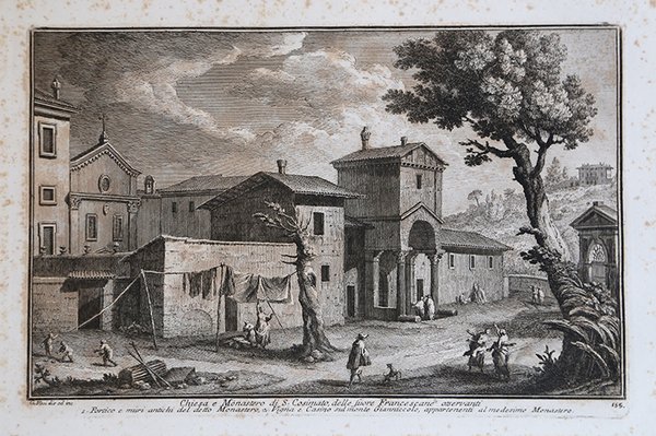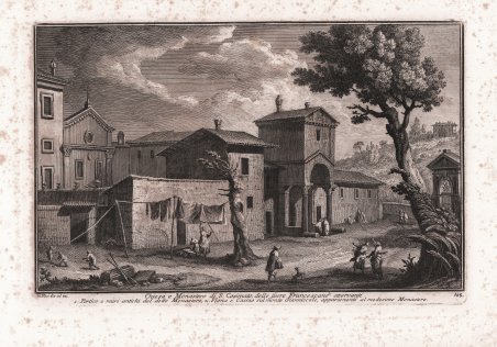 Veduta tratta dalla monumentale opera ' Delle magnificenze di Roma antica e moderna.Pubblicata in 10 volumi dal 1747 al 1761, l’opera presenta 238 incisioni in rame, ciascuna incisione con testo narrativo che fornisce informazioni storiche e documentarie. ' Conosciuto dai più semplicemente come il "maestro" di Giovanni Battista Piranesi, Giuseppe Vasi rivela in quest'opera monumentale la pienezza della sua creatività grafica. I 10 libri che la compongono hanno ognuno un frontespizio con titolo e data diversi: ' Libro primo che contiene le porte e mura; Libro secondo, che contiene le piazze principali di Roma con obelischi, colonne, ed altri ornamenti; Libro terzo, che contiene le basiliche e chiese antiche di Roma; Libro quarto che contiene i palazzi e le vie più celebri; Libro quinto che contiene i ponti e gli edifizj sul Libro sesto che contiene la chiese parrocchiali; Libro settimo che contiene i conventi e case dei chierici regolari; Libro ottavo che contiene i monasteri e conservatorj di donne; Libro nono che contiene i collegj, spedali, e luoghi pii; decimo che contiene le ville e giardini più rimarchevoli. Le ' Magnificenze ' forniscono un panorama completo e al tempo stesso anticonvenzionale dell'Urbe: così, insieme alle consuete, celeberrime inquadrature desunte dalla migliore tradizione vedutistica, si trova anche una Roma insolita, quella che, talvolta, non esiste più. A quest'opera, di centrale importanza nell'editoria romana di metà Settecento, l'Autore aveva lavorato per quasi un ventennio realizzando una monumentale guida dell'Urbe dove accanto alle consuete e celeberrime inquadrature tratte dalla migliore tradizione vedutistica, immortala anche scorci insoliti che sono poi scomparsi con il cambiare della città. Il testo che accompagna le vedute nel primo volume è opera di Giuseppe Bianchini, nel secondo di Orazio Orlandi e nei restanti del Vasi stesso. A partire dall'edizione del 1786, l'opera del Vasi, fu aggiornata dal figlio Mariano, che la pubblicò col titolo ' Raccolta delle più belle vedute antiche, e moderne di Roma, mostrando solo il nome del padre come autore. Questa nuova edizione presentava molte tavole della prima edizione, ed alcune nuove. Anche la pubblicazione di Mariano Vasi fu stampata più volte, sempre con l’aggiunta di nuove tavole. Esemplare tratto dall'edizione del 1786. Acquaforte, stampata su carta vergata coeva, completa dei margini, in ottimo stato di conservazione. ' View taken from the monumental work ' Delle magnificenze di Roma antica e moderna. Published in 10 volumes from 1747 to 1761, the work features 238 copper engravings, each engraving with a narrative text that provides historical and documentary information. Known by most simply as the "master" of Giovanni Battista Piranesi, Giuseppe Vasi reveals in this monumental work the fullness of his graphic creativity. The 10 books that compose it each have a title page with a different title and date: ' Libro primo che contiene le porte e mura; Libro secondo, che contiene le piazze principali di Roma con obelischi, colonne, ed altri ornamenti; Libro terzo, che contiene le basiliche e chiese antiche di Roma; Libro quarto che contiene i palazzi e le vie più celebri; Libro quinto che contiene i ponti e gli edifizj sul Libro sesto che contiene la chiese parrocchiali; Libro settimo che contiene i conventi e case dei chierici regolari; Libro ottavo che contiene i monasteri e conservatorj di donne; Libro nono che contiene i collegj, spedali, e luoghi pii; decimo che contiene le ville e giardini più rimarchevoli. The ' Magnificences ' provide a complete and at the same time unconventional panorama of the City: thus, together with the usual, celebrated shots taken from the best tradition of ' vedutistica, one also finds an unusual Rome, one that, at times, no longer exists. The author had worked on this work, of central importance in Roman publishing in the middle of the eighteenth century, for almost twenty years, producing a monumental guide to the “Urbe” where, alongside the usual and famous shots taken from the best tradition of ' vedutistica, he also immortalized unusual views that have since disappeared with the change of the city. The text that accompanies the views in the first volume is by Giuseppe Bianchini, in the second by Orazio Orlandi and in the remaining ones by Vasi himself. Starting from the edition of 1786, the work of Vasi, was updated by his son Mariano, who published it under the title ' Raccolta delle più belle vedute antiche, e moderne di Roma, showing only the name of his father as author. This new edition presented many plates of the first edition, and some new ones. The publication of Mariano Vasi was also printed several times, always with the addition of new plates. ' View taken from 1786 edition of the Vasi’s ' Delle Magnificenze di Roma Antica e Moderna. Etching, printed on contemporary laid paper, in very good condition. Cfr. Scalabroni, 251