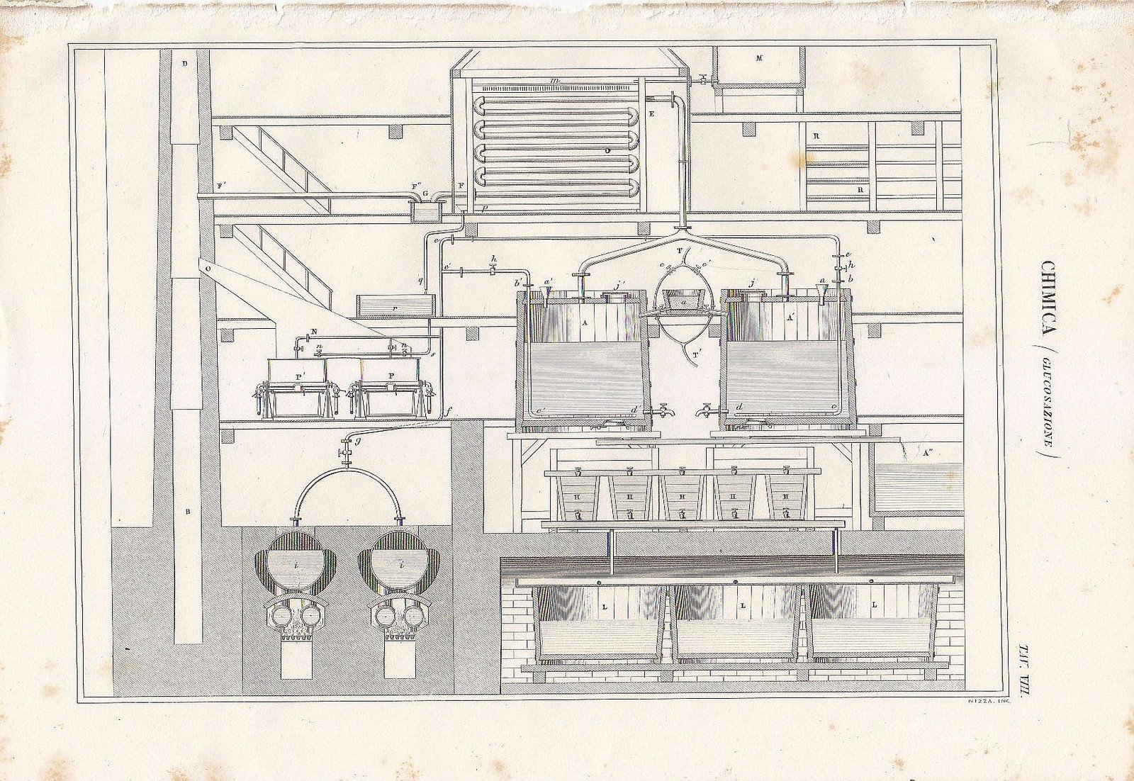 CHIMICA GLUCOSAZIONE INCISIONE ORIGINALE IN RAME DEL 1866