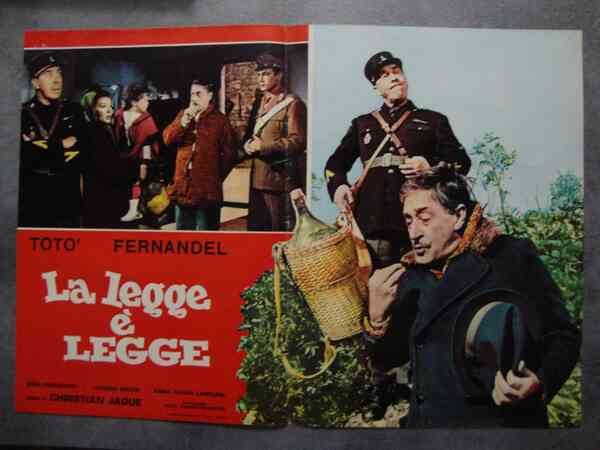 Christian Jaque (regista) Totò e Fernandel in "La legge è legge" Vides Cinematografica Fotobusta cinematografica. Con Noel Roquevert, Luciano Marin, Anna Maria Lanciani (49b/56b).