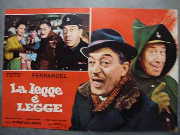 Christian Jaque (regista) Totò e Fernandel in "La legge è legge" Vides Cinematografica Fotobusta cinematografica. Con Noel Roquevert, Luciano Marin, Anna Maria Lanciani (49b/56b).