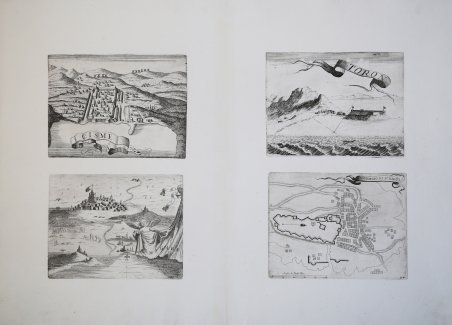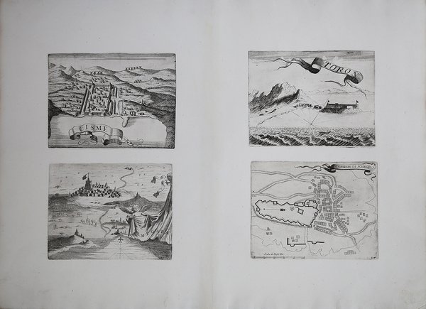 PRIMA EDIZIONE Esemplare tratto dal rarissimo ' Citta, Fortezze e, Isole, e Porti principali dell'Europa in Pianta et in Elevatione, Descritte, e Publicate Ad uso dell'Accademia Cosmografica degli Argonauti dal Padre Maestro Coronelli Lettore, e Cosmografo della Serenissima Republica di Venezia, edito a Venezia da Domenico Padovani nel 1689. Coronelli visse un periodo di straordinaria fecondità editoriale a partire dal 1689, quando ebbe la cattedra di geografia presso l'Università alle Procuratie, con la pubblicazione, nel 1690, del primo volume dell'Atlante Veneto. In effetti sotto il nome di ' Atlante Veneto ' va tutta la raccolta di tredici opere composte nell'arco del decennio successivo, dall'Isolario ' allo ' Specchio del mare. In realtà solo alcune di tali opere possono definirsi atlante, mentre altre, sono opere di compilazione o semplici raccolte di vedute e fortificazioni come questa rara raccolta. Incisione in rame, magnifica prova, con pieni margini, in perfetto stato di conservazione. ' Quattro incisioni di 170x130mm. FIRTS ISSUE This example of the map is taken from the very rare Coronelli's ' Citta, Fortezze e, Isole, e Porti principali dell'Europa in Pianta et in Elevatione, Descritte, e Publicate Ad uso dell'Accademia Cosmografica degli Argonauti dal Padre Maestro Coronelli Lettore, e Cosmografo della Serenissima Republica di Venezia, printed in Venice by Domenico Padovani in 1689. Coronelli lived a period of extraordinary editorial fecundity starting from 1689, when he had the chair of geography at the University at the Procuratie, with the publication, in 1690, of the first volume of the ' Atlante Veneto. Under the name of ' Atlante Veneto ' goes the entire collection of thirteen works composed over the next decade, from the ' Isolario ' to the ' Specchio del mare. Copperplate, with full margins, very good condition. Very rare. ' Four engravings of about 170x130mm. Cfr.