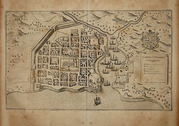 Incisione originale su rame (cm. 33x20 più margini bianchi) tratta dall’opera ‘Archontologia cosmica, sive Imperiorum, regnorum, principatuum, rerumque publicarum omnium per totum terrarum orbem commentarii.’ di Pierre d’Avity. Lieve ossidazione della carta e traccia di piegatura centrale, ma esemplare in ottimo stato di conservazione. Rara.
