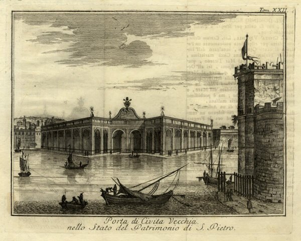 CIVITAVECCHIA - "Porta di Civita Vecchia nello Stato del Patrimonio di S. Pietro." Legg.te fiorita.
