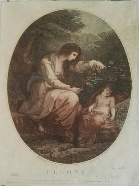 Bella incisione mitologica. Ang. Kaufman del. Bartolonii [sic] sculp. A Paris chez Esnauts & Rapilly, rue St. Jacques, à la Ville de Coutances, No. 259. Et chez Janinet, rue Haute Feville, No. 5. Cleone, figlio di Cleneto del demo di Cidateneo (in greco antico: ?, Kléon; Atene, . – Anfipoli, 422 a.C.), è stato un politico e militare ateniese, protagonista della guerra del Peloponneso. Buono stato di conservazione. Si noti la parte superiore destra che risulta leggermente usurata. Dimensioni: 29 cm x 39.