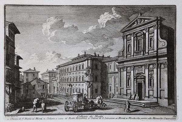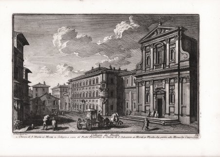 Veduta tratta dalla monumentale opera ' Delle magnificenze di Roma antica e moderna.Pubblicata in 10 volumi dal 1747 al 1761, l’opera presenta 238 incisioni in rame, ciascuna incisione con testo narrativo che fornisce informazioni storiche e documentarie. ' Conosciuto dai più semplicemente come il "maestro" di Giovanni Battista Piranesi, Giuseppe Vasi rivela in quest'opera monumentale la pienezza della sua creatività grafica. I 10 libri che la compongono hanno ognuno un frontespizio con titolo e data diversi: ' Libro primo che contiene le porte e mura; Libro secondo, che contiene le piazze principali di Roma con obelischi, colonne, ed altri ornamenti; Libro terzo, che contiene le basiliche e chiese antiche di Roma; Libro quarto che contiene i palazzi e le vie più celebri; Libro quinto che contiene i ponti e gli edifizj sul Libro sesto che contiene la chiese parrocchiali; Libro settimo che contiene i conventi e case dei chierici regolari; Libro ottavo che contiene i monasteri e conservatorj di donne; Libro nono che contiene i collegj, spedali, e luoghi pii; decimo che contiene le ville e giardini più rimarchevoli. Le ' Magnificenze ' forniscono un panorama completo e al tempo stesso anticonvenzionale dell'Urbe: così, insieme alle consuete, celeberrime inquadrature desunte dalla migliore tradizione vedutistica, si trova anche una Roma insolita, quella che, talvolta, non esiste più. A quest'opera, di centrale importanza nell'editoria romana di metà Settecento, l'Autore aveva lavorato per quasi un ventennio realizzando una monumentale guida dell'Urbe dove accanto alle consuete e celeberrime inquadrature tratte dalla migliore tradizione vedutistica, immortala anche scorci insoliti che sono poi scomparsi con il cambiare della città. Il testo che accompagna le vedute nel primo volume è opera di Giuseppe Bianchini, nel secondo di Orazio Orlandi e nei restanti del Vasi stesso. A partire dall'edizione del 1786, l'opera del Vasi, fu aggiornata dal figlio Mariano, che la pubblicò col titolo ' Raccolta delle più belle vedute antiche, e moderne di Roma, mostrando solo il nome del padre come autore. Questa nuova edizione presentava molte tavole della prima edizione, ed alcune nuove. Anche la pubblicazione di Mariano Vasi fu stampata più volte, sempre con l’aggiunta di nuove tavole. Acquaforte, stampata su carta vergata coeva, completa dei margini, in ottimo stato di conservazione. ' View taken from the monumental work ' Delle magnificenze di Roma antica e moderna. Published in 10 volumes from 1747 to 1761, the work features 238 copper engravings, each engraving with a narrative text that provides historical and documentary information. Known by most simply as the "master" of Giovanni Battista Piranesi, Giuseppe Vasi reveals in this monumental work the fullness of his graphic creativity. The 10 books that compose it each have a title page with a different title and date: ' Libro primo che contiene le porte e mura; Libro secondo, che contiene le piazze principali di Roma con obelischi, colonne, ed altri ornamenti; Libro terzo, che contiene le basiliche e chiese antiche di Roma; Libro quarto che contiene i palazzi e le vie più celebri; Libro quinto che contiene i ponti e gli edifizj sul Libro sesto che contiene la chiese parrocchiali; Libro settimo che contiene i conventi e case dei chierici regolari; Libro ottavo che contiene i monasteri e conservatorj di donne; Libro nono che contiene i collegj, spedali, e luoghi pii; decimo che contiene le ville e giardini più rimarchevoli. The ' Magnificences ' provide a complete and at the same time unconventional panorama of the City: thus, together with the usual, celebrated shots taken from the best tradition of ' vedutistica, one also finds an unusual Rome, one that, at times, no longer exists. The author had worked on this work, of central importance in Roman publishing in the middle of the eighteenth century, for almost twenty years, producing a monumental guide to the “Urbe” where, alongside the usual and famous shots taken from the best tradition of ' vedutistica, he also immortalized unusual views that have since disappeared with the change of the city. The text that accompanies the views in the first volume is by Giuseppe Bianchini, in the second by Orazio Orlandi and in the remaining ones by Vasi himself. Starting from the edition of 1786, the work of Vasi, was updated by his son Mariano, who published it under the title ' Raccolta delle più belle vedute antiche, e moderne di Roma, showing only the name of his father as author. This new edition presented many plates of the first edition, and some new ones. The publication of Mariano Vasi was also printed several times, always with the addition of new plates. ' Etching, printed on contemporary laid paper, in very good condition. Cfr. Scalabroni, 270