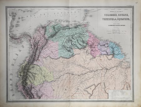 Bella carta geografica ' inserita nell'Atlas Universel ' di Eugène Andriveau-Goujon, ultimo esponente di una famiglia di editori di cartografia. La raccolta cartografica di Eugène Andriveau-Goujon venne pubblicata per la prima volta nel 1848 circa, con il titolo di ' Atlas classique et universel de geographie ancienne et moderne, contenant les decouvertes et les divisions les plus nouvelles dans les cinq parties du monde pour servir a la lecture des voyages, des ouvrages historiques et des meilleurs traites de geographie. ' Publie par J. Andriveau-Goujon. Adopte par le Ministre de la Guerre pour les bibliotheques regimentaires. ' Successive ristampe contengono il corpus originale di carte e una cospicua addenda. Eugène Andriveau-Goujon (1832 - 1897) fu un editore di mappe e cartografo attivo nella Parigi del XIX secolo. L'azienda fu creata nel 1825 quando Eugène Andriveau sposò la figlia dell'editore di mappe Jean Goujon, dando così vita ad Andriveau-Goujon. Le mappe di Andriveau-Goujon sono spesso confuse da identificare in quanto possono essere alternativamente denominate J. Goujon, J. Andriveau, J. Andriveau-Goujon, E. Andriveau-Goujon o semplicemente Andriveau-Goujon. Ciò si riferisce alle molteplici generazioni della dinastia Andriveau-Goujon e alla tendenza a ripubblicare materiale più vecchio senza aggiornare l'impronta. Le prime mappe con l'imprint Andriveau-Goujon furono pubblicate da Jean Andriveau-Goujon. Egli passò l'attività al figlio Gilbert-Gabriel Andriveau-Goujon, che nel 1858 passò al figlio Eugène Andriveau-Goujon, sotto la cui gestione l'azienda fu più prolifica. Andriveau-Goujon pubblicò numerose mappe tascabili e atlanti di pregio per tutto il XIX secolo e collaborò spesso con altri importanti cartografi francesi dell'epoca, come Brue e Levasseur. Lo stock della ditta fu acquisito da M. Barrère nel 1892. Litografia con colori originali, buono stato di conservazione. Beautiful map included in the ' Atlas Universel ' by Eugène Andriveau-Goujon, the last member of a family of cartographic publishers. Eugène Andriveau-Goujon's cartographic collection was first published in about 1848 under the title ' Atlas classique et universel de geographie ancienne et moderne, contenant les decouvertes et les divisions les plus nouvelles dans les cinq parties du monde pour servir a la lecture des voyages, des ouvrages historiques et des meilleurs traites de geographie. Publie par J. Andriveau-Goujon. Adopte par le Ministre de la Guerre pour les bibliotheques regimentaires. Subsequent reprints contain the original body of maps and a substantial addendum. Eugène Andriveau-Goujon (1832 - 1897) was a map publisher and cartographer active in 19th century Paris. The firm was created in 1825 when Eugène Andriveau married the daughter of map publisher Jean Goujon - thus creating Andriveau-Goujon. Maps by Andriveau-Goujon are often confusing to identify as they can be alternately singed J. Goujon, J. Andriveau, J. Andriveau-Goujon, E. Andriveau-Goujon, or simply Andriveau-Goujon. This refers to the multiple generations of the Andriveau-Goujon dynasty and the tendency to republish older material without updating the imprint. The earliest maps to have the Andriveau-Goujon imprint were released by Jean Andriveau-Goujon. He passed the business to his son Gilbert-Gabriel Andriveau-Goujon, who in 1858 passed to his son, Eugène Andriveau-Goujon, under whose management the firm was most prolific. Andriveau-Goujon published numerous fine pocket maps and atlases throughout the 19th century and often worked with other prominent French cartographers of the time such as Brue and Levasseur. The firm's stock was acquired by M. Barrère in 1892. Litograph with original colour, good condition. Cfr.