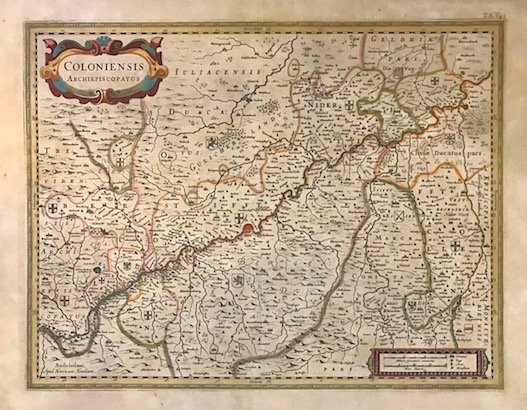 Carta geografica originale (cm. 49x38 più ampi margini bianchi) tratta dall’edizione in lingua latina dell’ ‘Atlas novus, sive descriptio geographica orbis terrarum’ pubblicato da Johannes Janssonius ed Henricus Hondius. Splendida coloritura d’epoca all’acquarello. Esemplare in ottimo stato di conservazione. Rara.