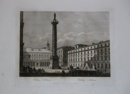 Veduta tratta dall’opera ' Nuova Raccolta delle principali vedute antiche e moderne dell’Alma città di Roma e sue vicinanze, incise a bulino da Pietro ed Achille Parboni e Pietro Ruga l’anno 1830, ' edita da Giacomo Antonelli con imprint ' Roma presso Giacom.o Antonelli in Via del Corso alle Convertite num 179B. Le tavole dell’opera furono incise tra il 1825 e il 1829 da diversi incisori tra i quali i fratelli Parboni e Pietro Ruga. Ciascuna reca il nome dell’incisore, l’indirizzo editoriale e una doppia didascalia in italiano e in francese. Acquaforte, in ottimo stato di conservazione. View taken from the work ' Nuova Raccolta delle principali vedute antiche e moderne dell'Alma città di Roma e sue vicinanze, engraved with engraving by Pietro and Achille Parboni and Pietro Ruga the year 1830, published by Giacomo Antonelli with imprint ' Roma presso Giacom.o Antonelli in Via del Corso alle Convertite num 179B. The plates were engraved between 1825 and 1829 by several engravers including the Parboni brothers and Pietro Ruga. Each bears the engraver's name, editorial address, and a double caption in Italian and French. Etching, in very good condition. Cfr.