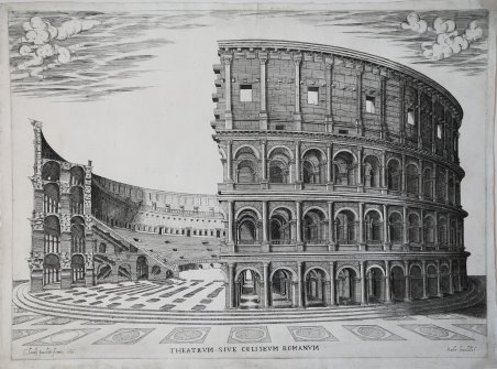 Spaccato del Colosseo, ricostruzione.Bulino, 1581, con imprint e data in basso a sinistra: «Claudij Duchetti formis, 1581» e firma dell’incisore in basso a destra: «Ambr. Brambilla f[ecit]». Opera parte dello "Speculum Romanae Magnificentiae”. Esemplare nel primo stato di due, avanti la firma del Brambilla abrasa (cfr. Hülsen 1921, p. 146, 18, B/f-g).Iscritto in basso al centro: «THEATRVM SIVE COLISEVM ROMANVM».Ricostruzione del Colosseo in sezione e proiezione orizzontale. L’incisione deriva da quella pubblicata per i tipi di Antonio Salamanca nel 1538, probabilmente su disegno di Domenico Giuntalodi e incisione di Girolamo Fagiuoli. Molto richiesta, la stampa fu poi riedita in formato più ridotto da Antonio Lafréry, con probabile intaglio di Nicolas Beatrizet. Questa è una nuova versione, incisa da Ambrogio Brambilla per l’editore Duchetti. L’edificio sorse sul luogo dello stagno artificiale che era ai piedi della Domus Aurea. I lavori sotto l’imperatore Vespasiano arrivarono sino al terzo ordine e furono completati dal figlio Tito, che nell’anno 80 d.C. ordinò una seconda spettacolare inaugurazione protrattasi per cento giorni nei quali furono uccise circa 5000 fiere. Una curiosa nota su riti di negromanzia che nel Cinquecento si svolgevano nel Colosseo viene da Benvenuto Cellini: «Andaticene al Culiseo, quivi paratosi il prete a uso di negromante, si mise a disegnare i circuli in terra con le più belle cirimonie che immaginar si possa al mondo; e ci aveva fatto portare profummi preziosi e fuoco, ancora profummi cattivi. Come e’ fu in ordine, fece la porta al circulo; e presoci per mano, a uno a uno ci messe drento al circulo; di poi compartì gli uffizii; detta il pintàculo in mano a quell’altro suo compagno negromante, agli altri dette la cura del fuoco per e’ profummi; poi messe mano agli scongiuri. Durò questa cosa più d’una ora e mezzo; comparse parecchi legione, di modo che il Culiseo era tutto pieno. Io che attendevo ai profummi preziosi, quando il prete cognobbe esservi tanta quantità, si volse a me e disse: “Benvenuto, dimanda lor qual cosa”. Io dissi che facessino che io fussi con la mia Angelica siciliana. Per quella notte noi non avemmo risposta nessuna; ma io ebbi bene grandissima satisfazione di quel che io desideravo di tal cosa». L’opera appartiene allo ' Speculum Romanae Magnificentiae, la prima iconografia della Roma antica. ' Lo ' Speculum ' ebbe origine nelle attività editoriali di Antonio Salamanca e Antonio Lafreri (Lafrery). Durante la loro carriera editoriale romana, i due editori - che hanno lavorato insieme tra il 1553 e il 1563 - hanno avviato la produzione di stampe di architettura, statuaria e vedutistica della città legate alla Roma antica e moderna. Le stampe potevano essere acquistate individualmente da turisti e collezionisti, ma venivano anche acquistate in gruppi più grandi che erano spesso legati insieme in un album. Nel 1573, Lafreri commissionò a questo scopo un frontespizio, dove compare per la prima volta il titolo Speculum Romanae Magnificentiae. Alla morte di Lafreri, due terzi delle lastre di rame esistenti andarono alla famiglia Duchetti (Claudio e Stefano), mentre un altro terzo fu distribuito tra diversi editori. Claudio Duchetti continuò l’attività editoriale, implementando le lastre dello Speculum con copie di quelle “perdute” nella divisione ereditaria, che fece incidere al milanese Amborgio Brambilla. Alla morte di Claudio (1585) le lastre furono cedute – dopo un breve periodo di pubblicazione degli eredi, in particolare nella figura di Giacomo Gherardi - a Giovanni Orlandi, che nel 1614 vendette la sua tipografia al fiammingo Hendrick van Schoel. Stefano Duchetti, al contrario, cedette le proprie matrici all’editore Paolo Graziani, che si associò con Pietro de Nobili; il fondo confluì nella tipografia De Rossi passando per le mani di editori come Marcello Clodio, Claudio Arbotti e Giovan Battista de Cavalleri. Colosseum, reconstructionEtching with engraving, 1581, with imprint and date at bottom left: "Claudij Duchetti formis, 1581" and engraver’s signature at bottom right: “Ambr. Brambilla f[ecit]”. Work part of the “Speculum Romanae Magnificentiae”. Example of the first state of two, before the Brambilla’s name erased (cf. Hülsen 1921, p. 146, 18, B/f-g).Bottom center inscription: "THEATRVM SIVE COLISEVM ROMANVM". Reconstruction of the Colosseum in section and horizontal projection. The engraving derives from the one published by Antonio Salamanca in 1538, probably on a drawing by Domenico Giuntalodi and engraving by Girolamo Fagiuoli. Much in demand, the print was then reissued in smaller format by Antonio Lafréry, with probable engraving by Nicolas Beatrizet. This is a new version, engraved by Ambrogio Brambilla for the publisher Duchetti. The building rose on the site of the artificial pond that was at the foot of the Domus Aurea. The works under the emperor Vespasian arrived until the third order and were completed by his son Titus, who in the year 80 A.D. ordered a second spectacular inauguration that lasted for one hundred days during which about 5000 fairs were killed. This print comes from the “Speculum Romanae Magnificentiae” (The Mirror of Roman Magnificence). The Speculum found its origin in the publishing endeavors of Antonio Salamanca and Antonio Lafreri. During their Roman publishing careers, the two foreign publishers - who worked together between 1553 and 1563 - initiated the production of prints recording art works, architecture and city views related to Antique and Modern Rome. The prints could be bought individually by tourists and collectors, but were also purchased in larger groups which were often bound together in an album. In 1573, Lafreri commissioned a title page for this purpose, which is where the title ‘Speculum Romanae Magnificentiae’ first appears. Lafreri envisioned an ideal arrangement of the prints in 7 different c