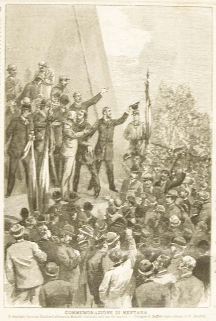 Raffigurazione della cerimonia commemorativa di Mentana a Monterotondo. Testo al verso
