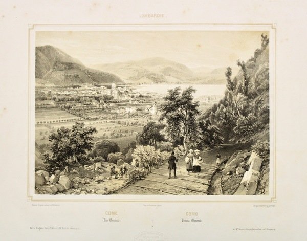 Litografia, mm 193x275 su foglio di mm 360x550, stampata da Lemercier. Ottimo esemplare con lievi saltuarie fioriture della carta quasi esclusivamente ai margini.