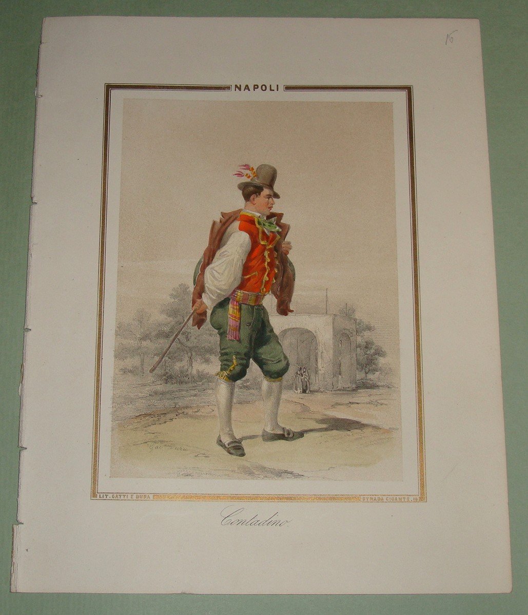 DURA G. Contadino. 1845 ca. Cm.22x16. Litografia acquarellata. Coloritura coeva. Rara serie con bordura dorata.