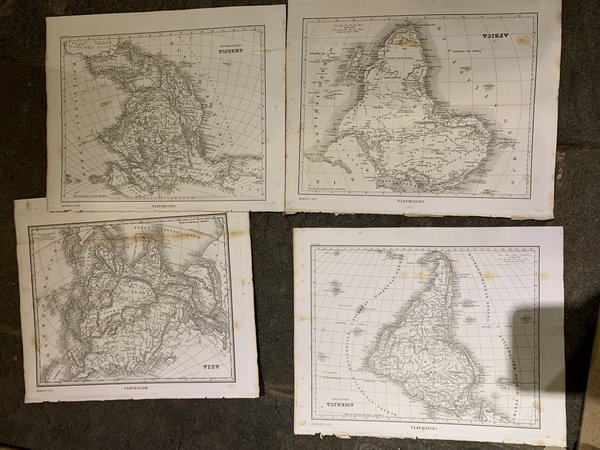 Lotto di 8 carte geografiche incise su rame mm. 230x285, tratte da "Nuova Enciclopedia Popolare ovvero dizionario generale di scienze, lettere, arti.". Torino, Pomba, 1849