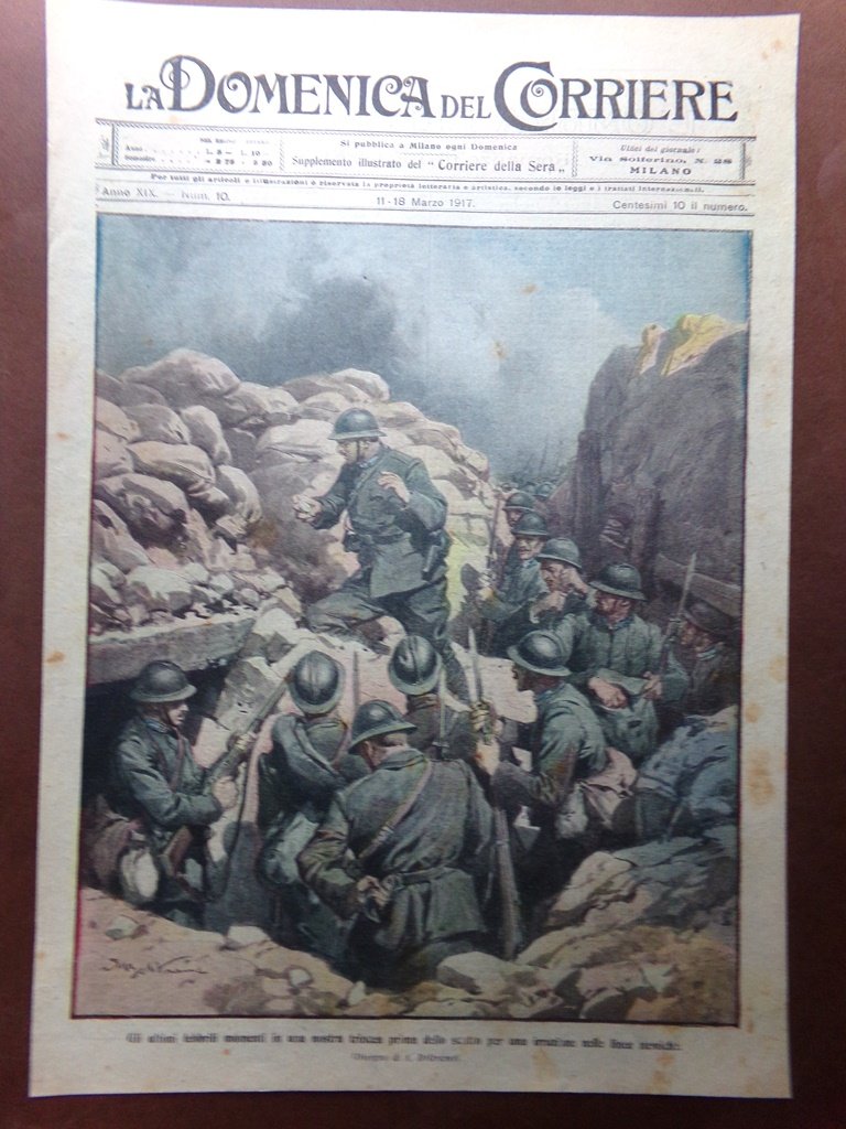 Copertina Domenica Corriere nr. 10 del 1917 WW1 Trincea Prima Scatto Irruzione