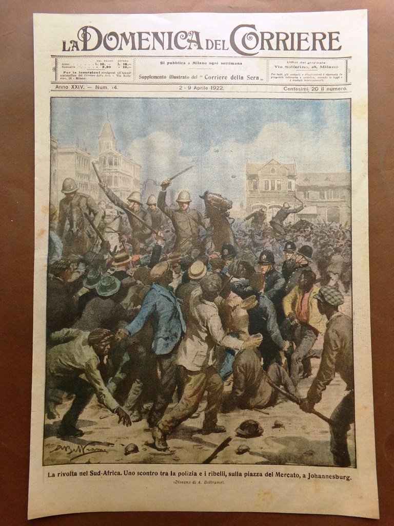 Copertina Domenica Corriere nr. 14 del 1922 Rivolta in Sudafrica Johannesburg