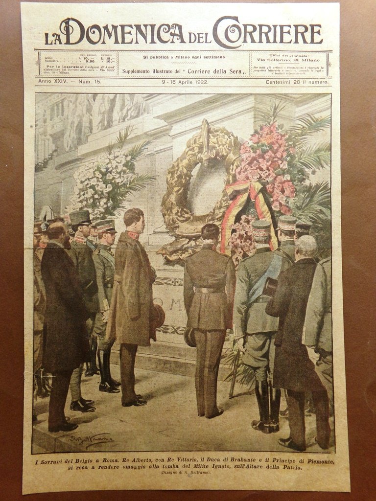 Copertina Domenica Corriere nr. 15 del 1922 Sovrani Belgio Tomba Milite Ignoto